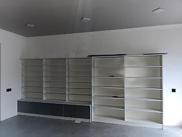 Nure vitrini – mağaza və anbarlar üçün vitrın polkalar (vitrin rəfləri) - Ümumi uzunluq: təxminən 12 metr+ - Hündürlük: 2 metr - Konstruksiya: paslanmayan metal boru karkas, möhkəm polkalar - Modu...