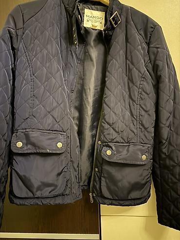 Mango qadın gödəkçəsi - Rəng: tünd göy (navy) - Dizayn: romb tikişli (quilted) korpus, düz çiyin hissələri - Yaxa: stend yaxa, metal toka və pərçimlərlə tənzimlənən qayış - Bağlanma: ön hissədə ik...