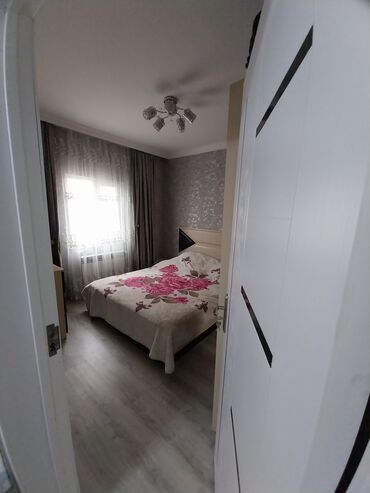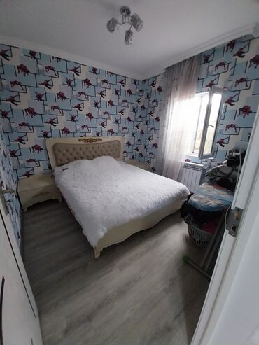 - Yataq otağı 1: yumşaq başlıqlı çift ölçülü çarpayı, tumbalar, pərdə və çilçıraq, laminat döşəmə.