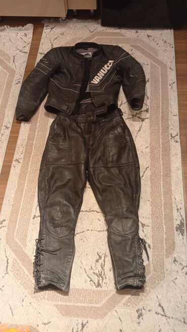 1) Dəri kombinezon: Vanucci markalı qara dəri gödəkcə və şalvar. Diz, bud və dirsək hissələrində gücləndirmələr, beldə tənzimlənən kəmər, şalvarın baldır hissəsində bağlama/kruçoklu iplər.