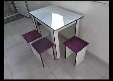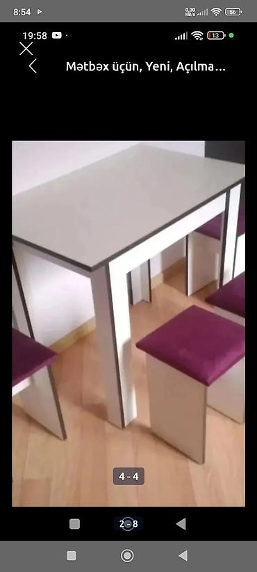 Mətbəx üçün kompakt masa və 4 taburet dəsti