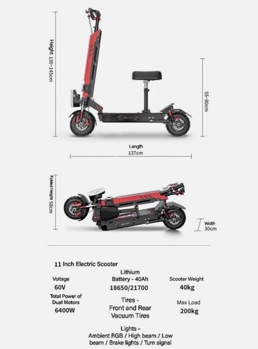 Yeni Elektrik samokat > 12", ≤ 250 Vt, > 45 km/s, Pulsuz çatdırılma