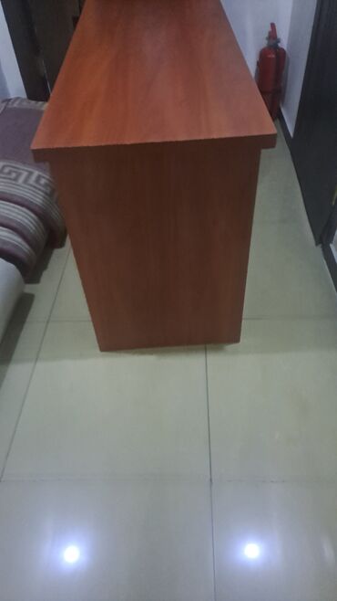 Ofis masası – taxta görünüşlü, isti qızılı-qəhvəyi rəngdə.