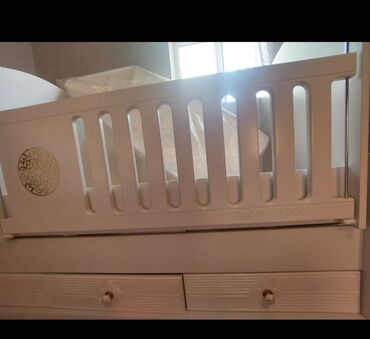 - Beşiyin içi: matrasa uyğun baza (şəkildə qoruyucu plyonka ilə)