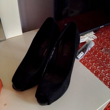 Qadın klassik tufli – qara rəng, Zara - Model: incə burunlu, balaca bantlı dekor (üst hissədə düyün formasında) - Daban: nazik “kitten heel” – təxmini 5–6 sm - Dizayn: minimalistik və zərif, ofis,...