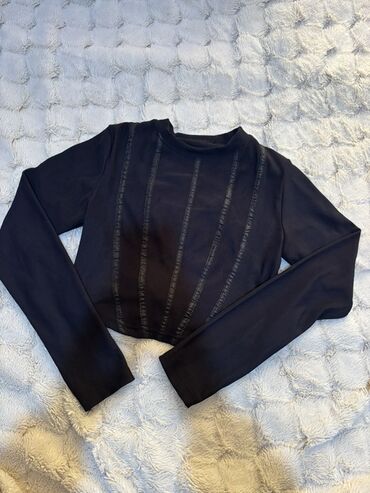 3 ədəd qadın üst geyimi seti 1) Qara uzunqol crop top – ön hissədə