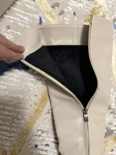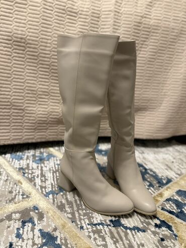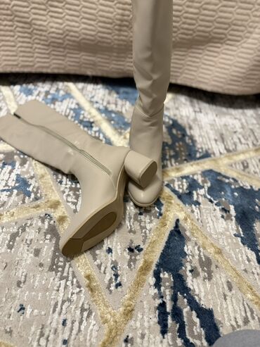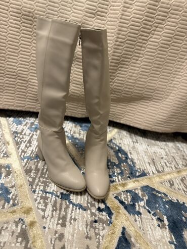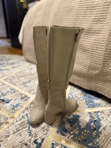 Qadın çəkmələri – dizə qədər, bej/qırıq-ağ rəng