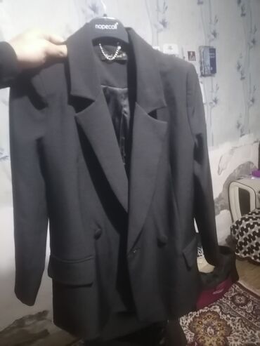 Yenidir.istifadə olunmayıb.Qadın şık pencəyi 40/L Uzunluğu 80 sm. - Rəng: qara - Dizayn: klassik yaxalıqlı, tək qapanma; ön hissədə iki ətək kəsişməli dekorativ ciblər - Qol: şəffaf tül materiald...