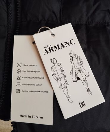 - Baxım təlimatları etiketdə: yuma etməyin; yalnız quru təmizləmə; ağardıcı istifadə etməyin; normal temperaturda ütüləmək olar; quruducu maşında qurudulmur