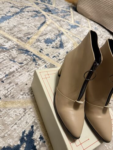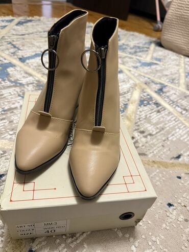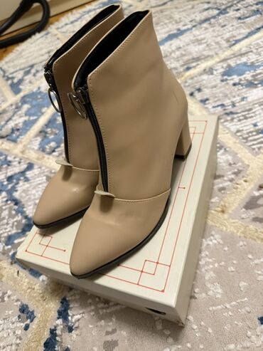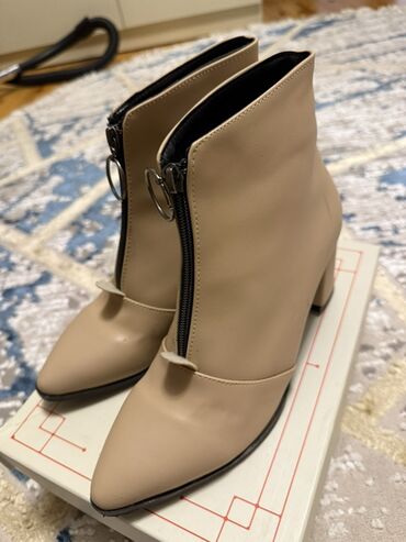 Qadın botları – bej rəng, dabanlı, ön hissədə fermuarlı