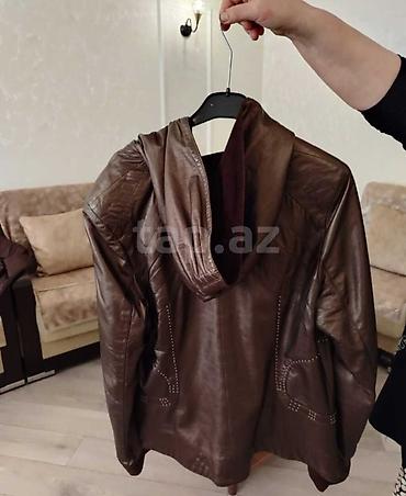 Temiz deri uzun plaş. 48-50 razmer. Reng- tünd şokalad. Geyinilib