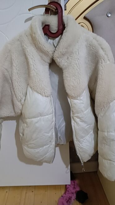 - Material: üst hissə yumşaq süni xəz (teddy/şerpa teksturası), alt və qol hissələrində parıltılı şişmə parça