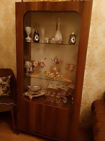 Səliqəli istifadə olunub.Klassik üslubda zövqlə işlənmiş qonaq otağı mebel dəsti. Tərkib: - Böyük vitrin şkaf: ön və yan hissələri şüşəli, içəridə şüşə rəflər; aşağı bölmədə qapalı dolablar və çek...