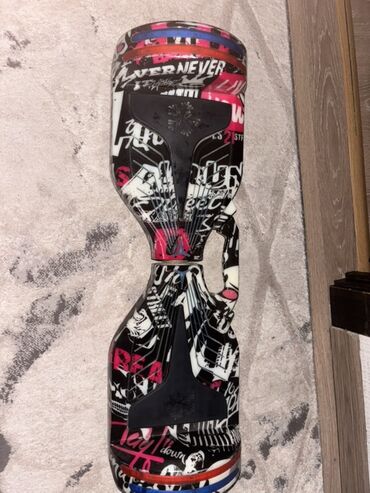 Deməy olar təzədi sürülmüş evdə qalıb Hoverboard/gyroskuter təkərlər, ikiqat platforma ilə. - Korpus: qara, rəngli naqışlı. - Sürüşməyə qarşı rezin ayaq platformaları. - LED işıqlar panel hissəsin...