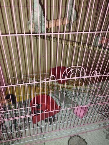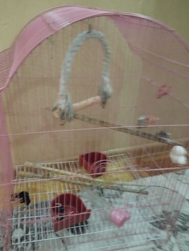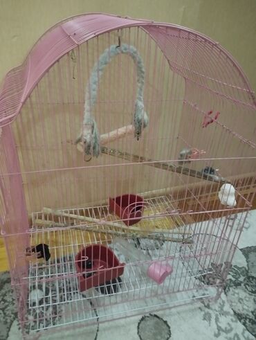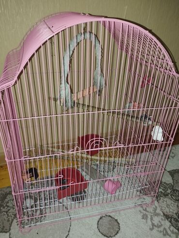 Qəfəs – kiçik və orta ölçülü ev quşları üçün - Material: metal barmaqlıqlar, plastik altlıq - Rəng: ağ barmaqlıqlar, açıq çəhrayı altlıq və dam hissəsi - Ön hissədə böyük əsas qapı, əlavə olaraq a...