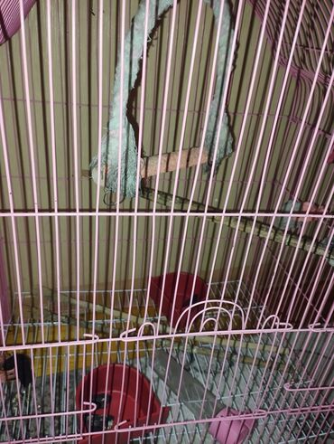 Quş qəfəsi – geniş ölçülü, ağ metal barmaqlıqlar və çəhrayı/plastik