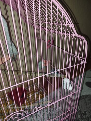 Quş qəfəsi – geniş ölçülü, ağ metal barmaqlıqlar və çəhrayı/plastik altlıq. Xüsusiyyətlər: - Material: toz boyalı metal karkas, çıxarıla bilən plastik altlıq (asan təmizlənir). - Forma: yuxarı his...