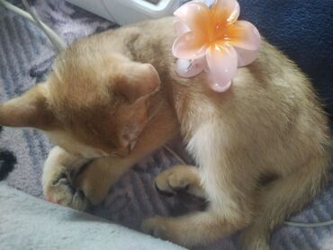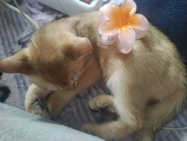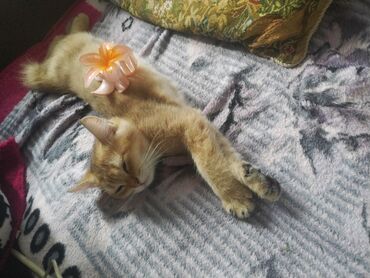 Sevimli pişik balası – şaftalı rəngli tüklər, ağaltılı sinə və pəncələr, iri qulaqlar və yumşaq quyruq. Fotolarda gül formalı saç tutacağı ilə yatarkən görünür. Sakit, mehriban xarakterli, qucağı sevir, ev şəraitinə uyğun. Təmiz, baxımlı, quma öyrəşmiş pişik balası axtaranlar üçün ideal ev heyvanıdır. Yemək seçmir, sakit mühitdə rahat yatır və oyun oynamanı sevir. Pişiyin ölçüsü balacadır; evdə uşaqlarla və sakit heyvanlarla rahat uyğunlaşa bilər.