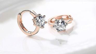 Qızılı rəngli zərif sırğalar kolleksiyası - Material: qızılı tonlu metal alaşıq - Bəzək: şəffaf və çəhrayı rəngli parlaq daşlar (mikro pavé yerləşdirmə), konus formalı elementlərlə və ya halqa tip...