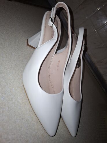 Məhsul: Qadın yüksək daban ayaqqabıları – Osmar Pacova (etiketdəki yazıya əsasən) - Model: Klassik “pump” stili, nazik hündür daban - Rəng: Ağ/şampan tonlarında baza, çoxrəngli parlaq daşlarla tam...
