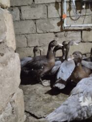 macar ördəkləri.7 dişi iki erkəy .cəm halda satılır.erkəylər 7 kilodan yuxarı olur çəkisi.dişilər ildə 3 dəfə kürt yatır.induşka ilə barter olar