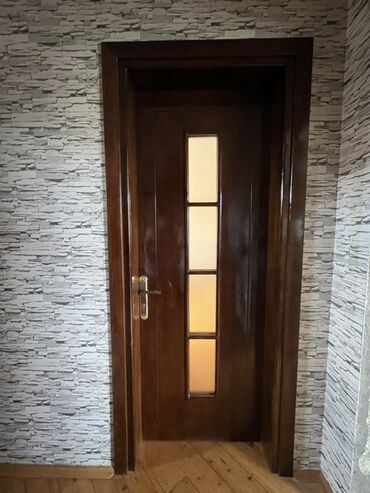 Tünd qəhvəyi rəngdə, dörd şüşəli pəncərəsi olan daxili qapı. Bu qapı