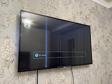 - Ekran ölçüsü: təqribən 40–43 düym (divar asılqanında quraşdırılıb)