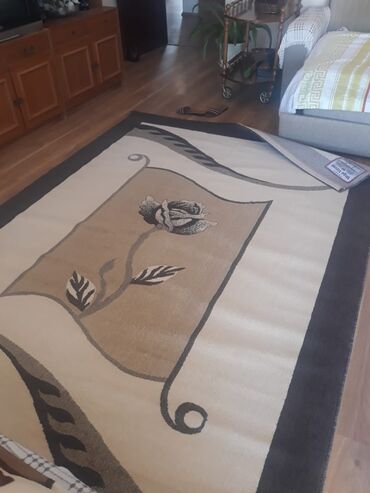 Xalça – klassik güllü naxışlı, krem-bej tonlarda 1.15m × 1.65m 5 ədədi 60 AZN-dir. - Brend/seriya: etiketi üzərində “Turkistan” qeyd olunur - Rəng p...