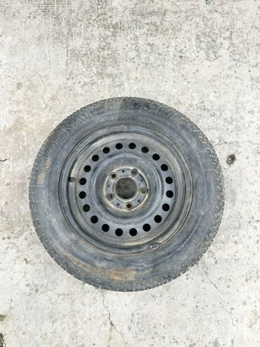 Avtomobil təkəri və diski - Təkər ölçüsü: 195/65 R15 (yan divarda qeyd olunub) - Şin tipi: yol/ümumi istifadə üçün, radial - Rəng: qara - Disk: 5 boltlu, çoxşüalı dizayn, qara rəngli (ehtimal ki, ...