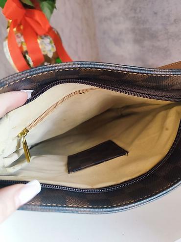 - Rəng: tünd-qəhvəyi/şokolad dama naxışı, karamel dəri detalları