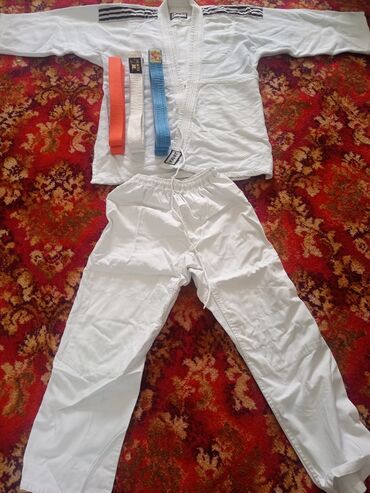 Adidas judo geyim dəsti - Brend: adidas - Ölçü: 1/140 (etiketdə göstərilib) - Material: 100% pambıq - Rəng: ağ - Komplekt: üst (gi/caket), şalvar və ağ kəmər - Dizayn: çiyinlərdə adidas-ın üç zola...