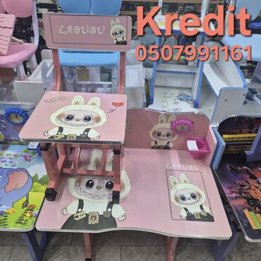 Uşaq üçün tənzimlənən masa-stul dəsti kredit satışla. çatdırılma pulsuz - Parlaq bənövşəyi rəngdə, sevimli cizgi obrazları ilə bəzədilmiş dizayn - Masa və stulun hündürlüyü tənzimlənir – məktəbəqə...