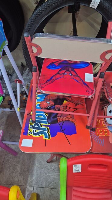 - Parlaq “Spider-Man” qrafikası ilə laminasiya olunmuş masaüstü və oturacaq