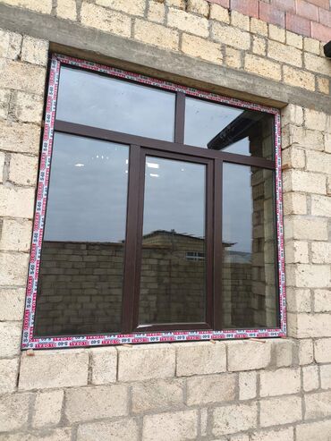 - Pəncərələr: Qəhvəyi rəngli PVC (plastik) çərçivələr, ikili şüşə paket; montaj lentləri ilə quraşdırılıb