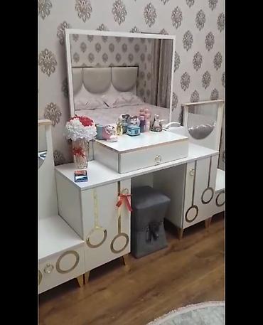 - Tualet masası – iri çərçivəli güzgü, üst çekmece, yan dolablar və açıq bölmə