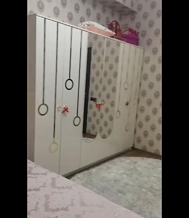 - 6 qapılı böyük şkaf – mərkəzdə güzgü, qapılarda dekorativ halqa naxışları, asılqan və rəf bölmələri