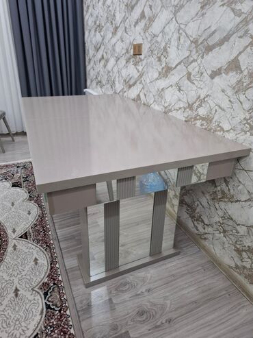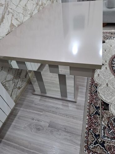 - Üst hissə: parlaq, hamar səth; qalın masaüstü kənarı ilə