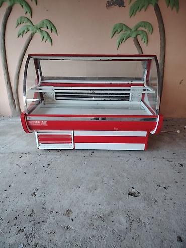 Mağaza/vitrin soyuducusu - Tip: Şaquli ön şüşəli vitrin soyuducu (salon – mağaza – kafe üçün) - Korpus: Ağ-qırmızı rəngli, ön və üst hissə əyri şüşə vitrindir - Göstəriliş: Məhsulların təqdimatı ü...