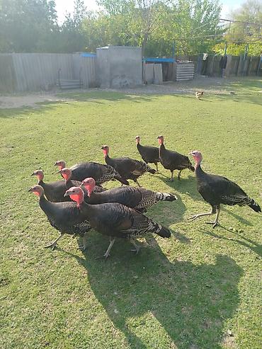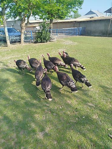 Təmizqan damazlığ Amerkan Bronz hinduşkaları satılır. 5-6 aylıqdılar, 6 fərə 4 erkəydi, yaxın vaxtlarda yumurtaya düşəcəklər. tam sağlam, təbii böyüdülmüş, vaksinasya olunmuş heyvanlardı. Super damazlığ isdəyənlər buyursun. 10 ədədi bir yerdə 560 manat.