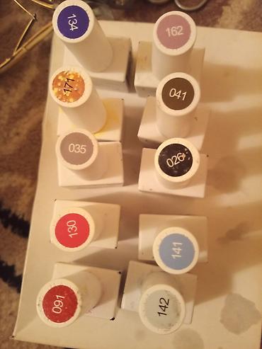 - Müxtəlif rəng kodlarında gel-laklar: 091, 026, 041, 035, 130, 134, 141, 142, 162, 171 (şüşələr üzərində rəng/nömrə nişanlı).