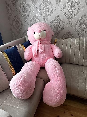Böyük ölçülü yumşaq oyuncaq ayı - Boyu: təxminən 1.20 m (şəkildə göstərilib) - Rəng: açıq çəhrayı - Material: yumşaq, tüklü plyuş parça - Daxili dolğu: sıx və həcmlidir, formasını yaxşı saxlayır -...