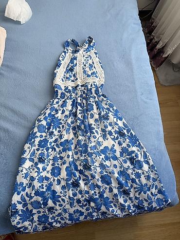 1) Mavi-ağ çiçək naxışlı yay paltarı