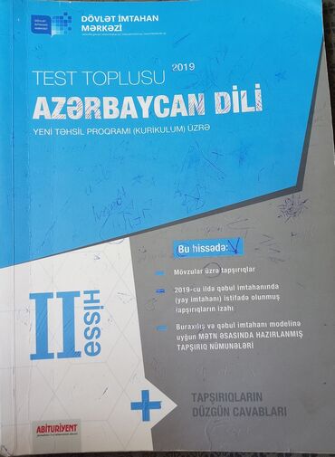 Bu test toplusu Dövlət İmtahan Mərkəzi tərəfindən nəşr olunmuş, riyaziyyat fənni üzrə qəbul imtahanlarına hazırlaşan abituriyentlər üçün nəzərdə tutulmuşdur. Kitab "Hissə II" olaraq qeyd edilmiş və 2018-ci il nəşridir. İçərisində qəbul proqramının II hissəsinə aid test tapşırıqları, 2017-2018-ci illərdə istifadə olunmuş test variantları və 2019-cu ilin qəbul modelinə uyğun test tapşırıqları mövcuddur. Həmçinin, test tapşırıqlarının düzgün cavabları da kitaba daxil edilmişdir. Bu test toplusu, imtahanlara sistemli şəkildə hazırlaşmaq və bilik səviyyəsini yoxlamaq üçün əlverişli bir vasitədir. Hər biri ayrı-ayrılıqda 3azn