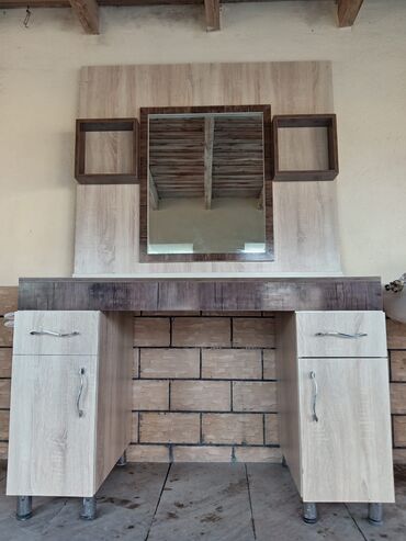 Saç güzgüsü. 1 aydır yığdırılıb. Demək olarki istifadə olunmayib. Yeni qalıb. Hər siyirməsində kilid var. 3 ədəddir. 2 ini satırıq. 1 i 270 azn. Ünvan Buzovna. (Oturacaq satılmır. )
