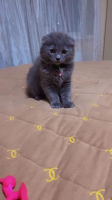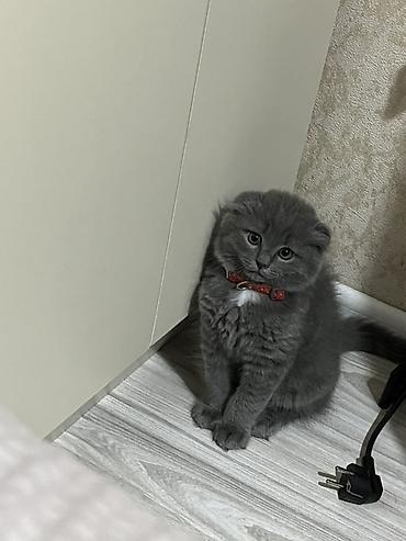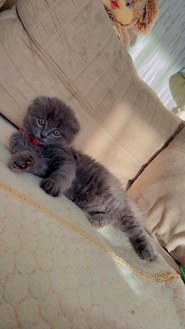 Skottiş Fold pişiyi –2 aylıq baladı. Oynaqdı. Özün sevdirir. Qızdı. Peyvəndləri edilibdi. Qum yem tərbiyesi var
