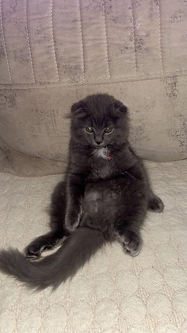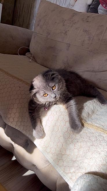 6 aylıq, tam sağlam və sakit xasiyyətli təmiz Şotland (yastı qulaq) pişiyidir. Qum tərbiyəsi var, ev şəraitinə öyrəşib. Real alıcılar əlaqə saxlaya bilər.