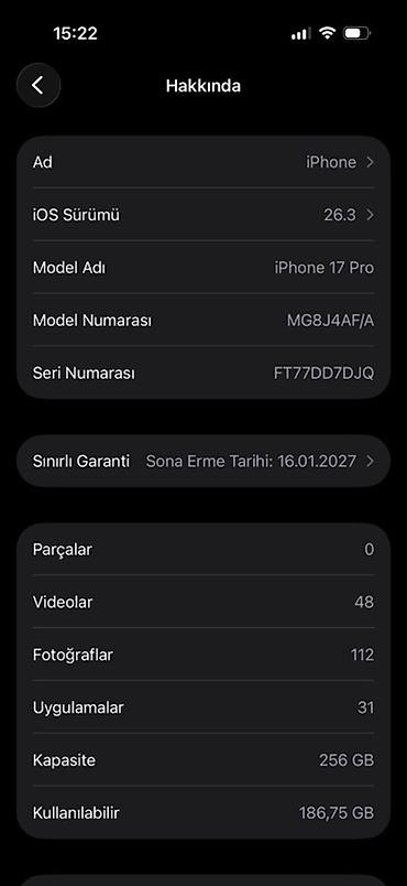 IPhone 17 Pro, 256 GB, Simsiz şarj
