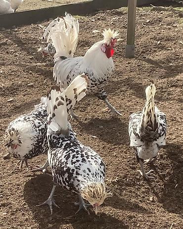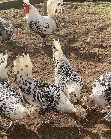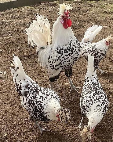 Məhsul: Nadir və dekorativ xallarına görə seçilən toyuq cinsləri (ağ fon üzərində qara ləkəli, çiçəkli ibarəli naxışlar, başda toplusa bənzər tüklü “tac”, quyruğu yüksək və yelpik kimi açılan xoruzlar).