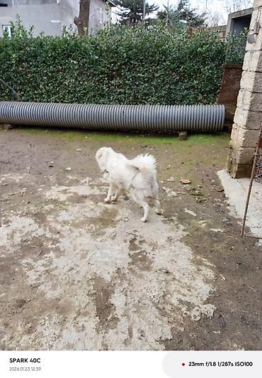 Cins: Orta Asiya çoban iti tipli (alabay tipajı) Yaş: balalıq dövrü Rəng: ağ-şabalıdı, üzündə tünd maska Zəncir və taxta darvaza daxmalı yerə öyrəşib Xüsusiyyətlər: - Həyətyanı sahə və fermalar üç...