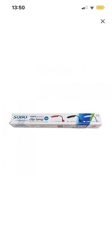 - LED işıq: SOBO mini clip lamp. Kompakt ölçü, çevik boyun və kənara bərkidilən klips konstruksiyası sayəsində nano və kiçik akvariumlar üçün uyğundur. Enerjiyə qənaətcil, bitkilərin və balıqların müşahidəsi üçün parlaq işıq verir.